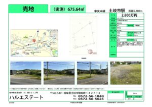 土岐市下石町山神にて事業用地200坪を貸し出しまたは販売します。(物件情報9月17日更新)