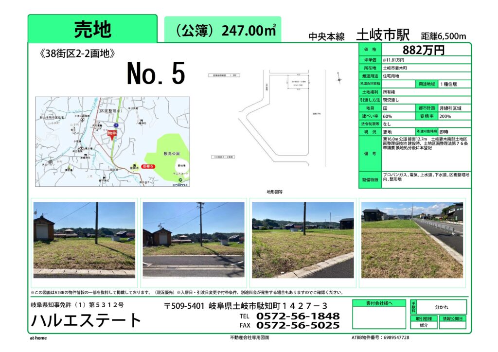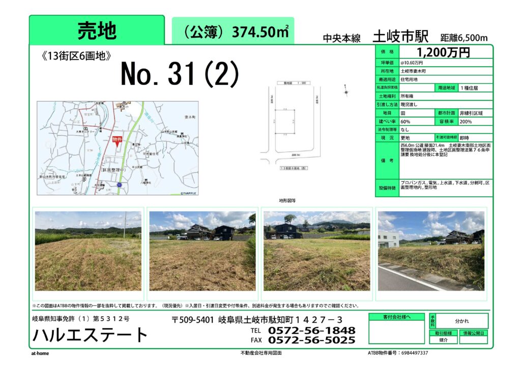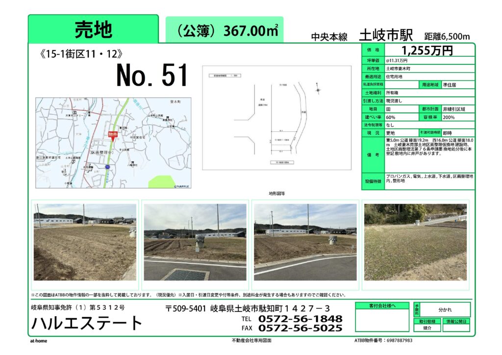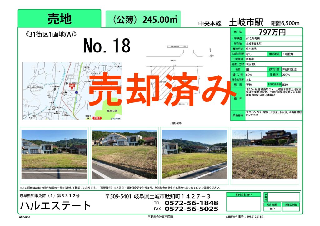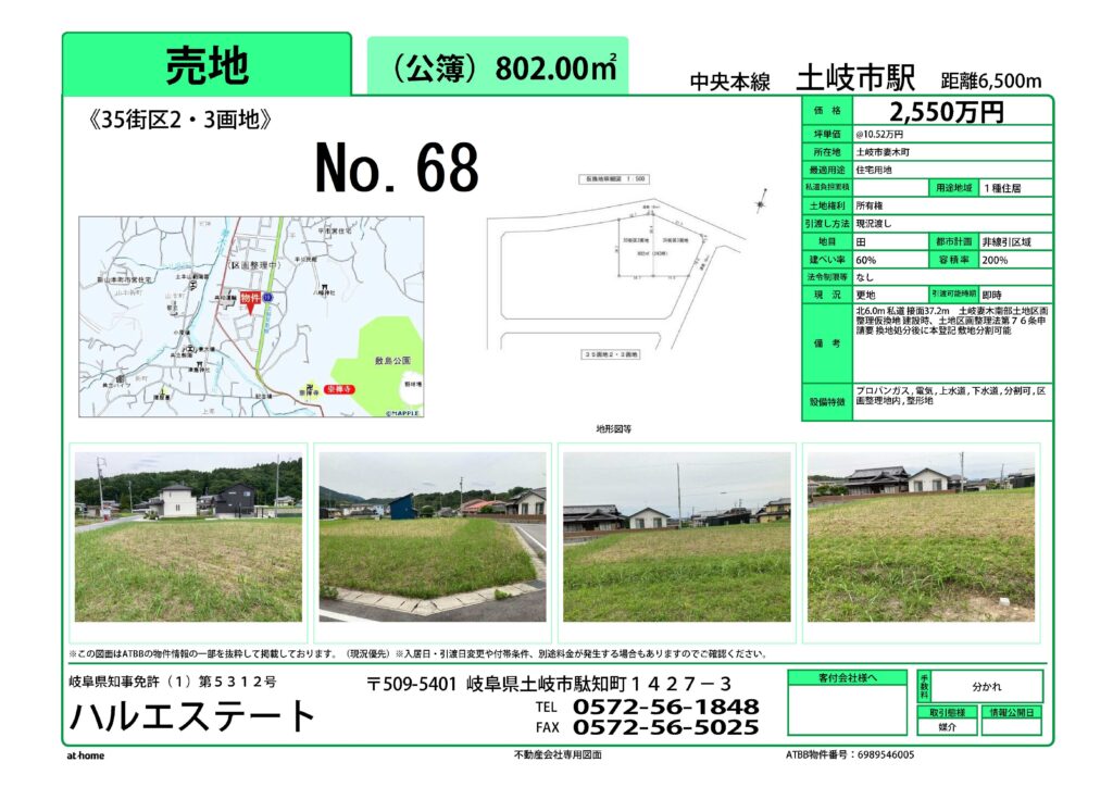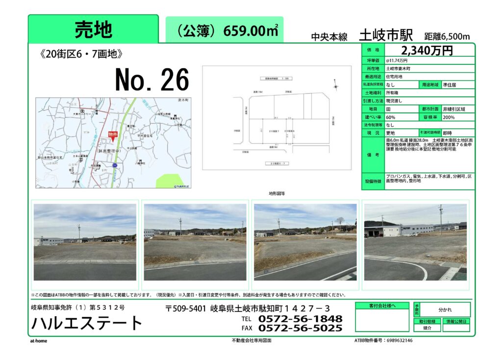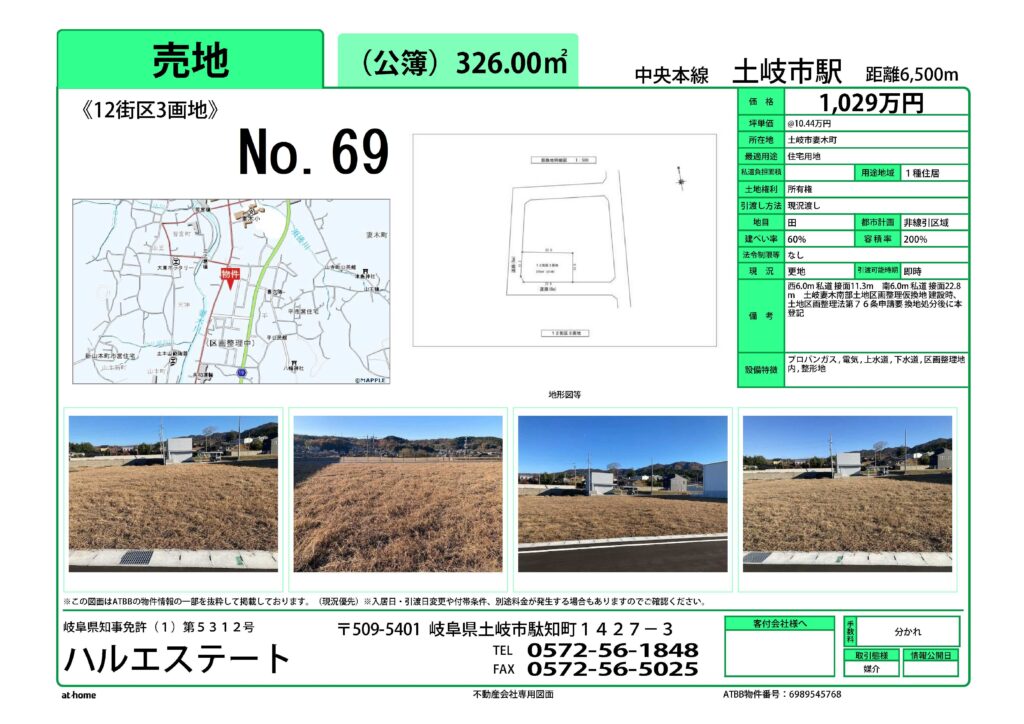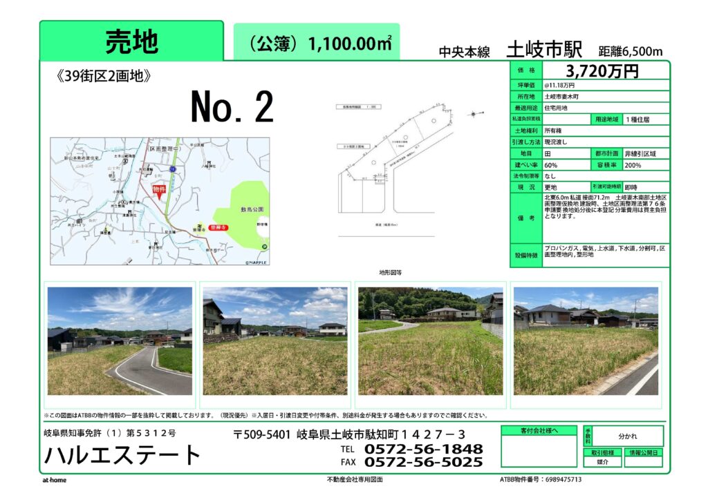土岐市妻木南部区画整理事業の住宅用地を仲介しております。気軽にお問い合わせください。