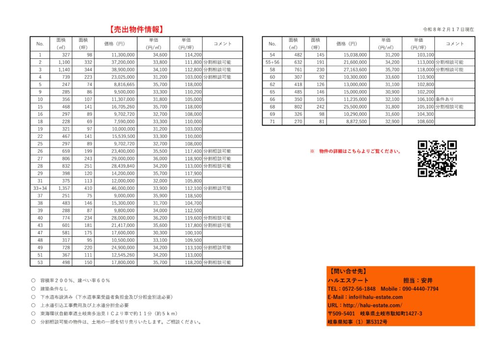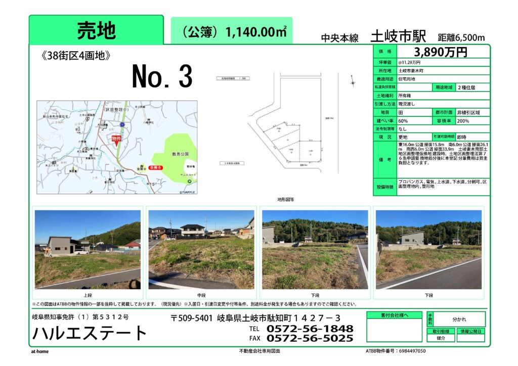 可児市羽生ヶ丘団地内にて3宅地を下記の通り分譲します。(物件情報にてご確認下さい。11月24日更新)