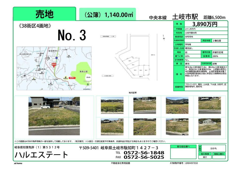 土岐市妻木南部区画整理事業の住宅用地の物件を新しく追加しました。(物件情報4月10日更新)