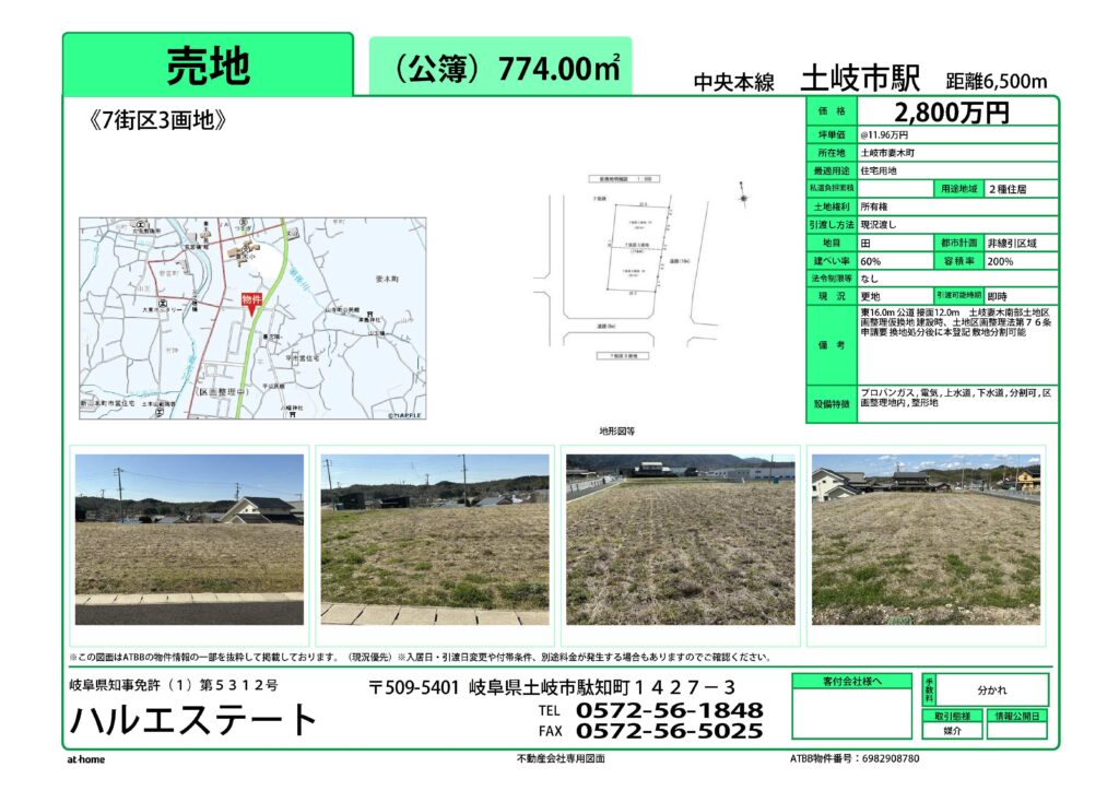 土岐市妻木南部土地区画整理の住宅用地を仲介します。