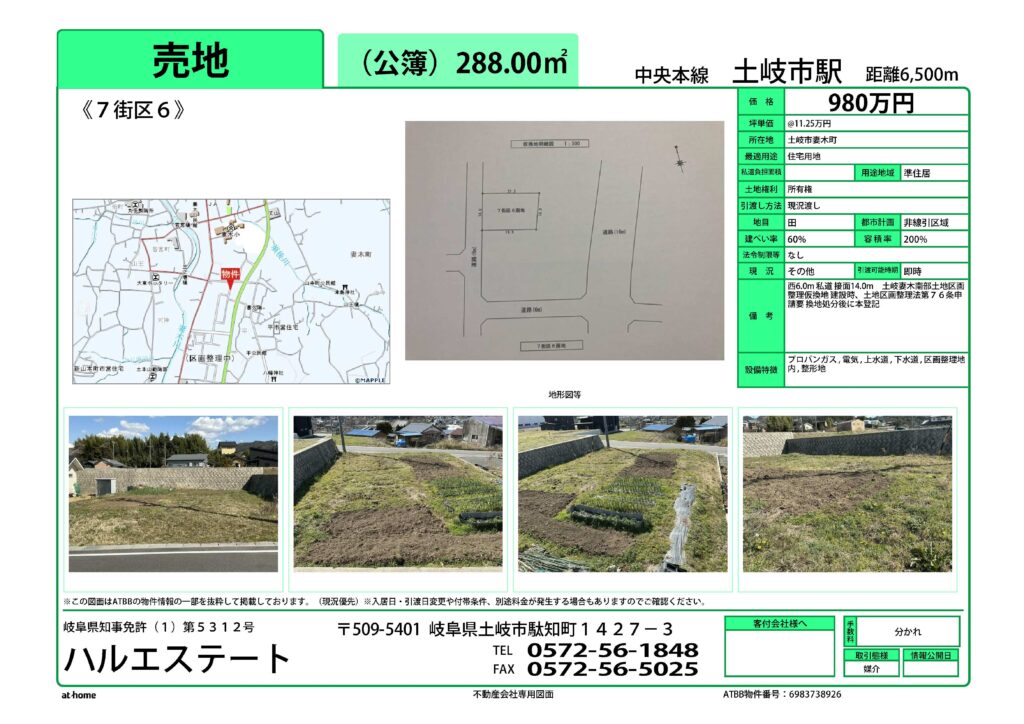 土岐市妻木南部土地区画整理の住宅用地を販売いたします。
